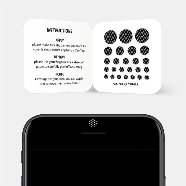 a CamTag set carries 25 – 0.1 mm thin – privacy stickers in 5 sizes.